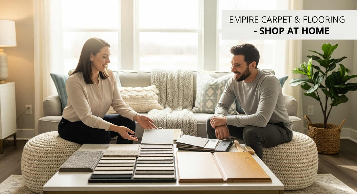 Home Visit with Samples. At the appointed time, an Empire flooring expert comes to your house or apartment with binders of samples (carpet swatches, vinyl planks, hardwood boards, etc.). They’ll measure the room(s) and walk you through options that fit your style and budget. This is shop-at-home convenience – no showroom visit needed.